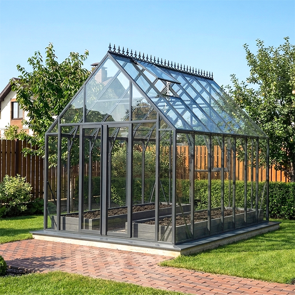 Модель ESTRELLA – это теплица с увеличенной высотой. Такая конфигурация стала возможна за счёт уменьшения угла в коньке конструкции. Благодаря такому углу, верхний скат теплицы стал более приспособлен для ускоренного самостоятельного схода снега, который даже не успевает скапливаться на крыше.